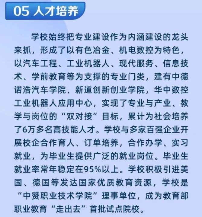 3.考试、录取方式:普通高中生综合评价录取实行“文化素质+职业技能”。文化素质:以考生普通高中生学业水平考试成绩为准。职业技能:待学生报到入学后,由招生学校根据现有的校企合作模式,结合现代学徒制试点专业、企业订单培养协议等技术技能型人才培养需求,按照学生的特长和意愿,由学校、企业组织职业适应性测试。