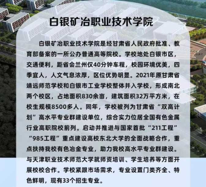甘肃省教育考试院官方网站:http://www.ganseea.cn或http://art.ganseea.cn白银矿冶职业技术学院官方网站:http://www.bymu.cn考生应在规定时间内登录省教育考试院网站报名并填报志愿,报名时间截止后不再安排补报。